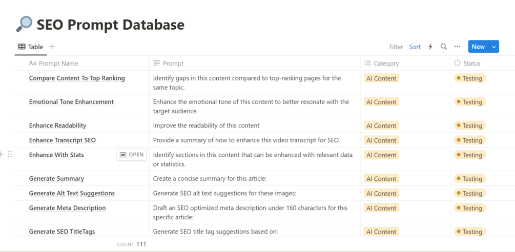 Get instant access to a growing Notion database of SEO prompts for ChatGPT!